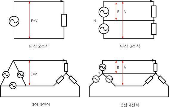 | 교류 방식 | 단상 2선식 | VIcosφ | VIcosφ/2 | 100 | |