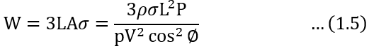 로 된다. 전선의 밀도를 σ [kg/㎤]라고 하면 총중량 W [kg]은