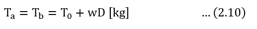 위 식에서 wD는 보통 T₀의 1.0 [%] 정도이므로 Ta = Tb ≒ T₀, 즉 전선의 각 점의 장력은 모두 수평 장력 T₀와 같다고 가정해서 설계하여도 별 문제가 없다.