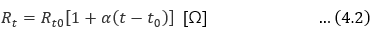 로 된다. 단, α는 저항 온도 계수로서 기준 온도에 따라 그 값이 조금씩 달라지는 것인데 일반적으로는 20 [℃]의 값을 기준으로 삼고 있다. 도전율 97 [%]의 경동선에서는 α0=0.00413, α20=0.00381, α30=0.0037 정도이다.