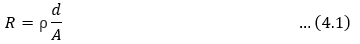 균일한 단면적을 갖는 직선상의 도체의 저항 R은 d [m]에 비례하고, 단면적 A [㎟]에 비례한다. 즉, 식 (4.1)로 표현된다.