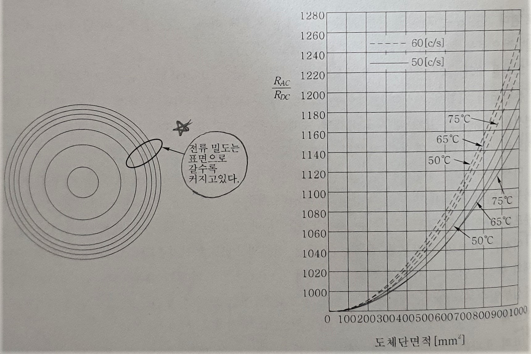 표 4.1 경동선의 교류 저항 Rac의 직류저항 Rdc에 대한 비