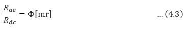 이 때문에 전선의 유효면적은 줄고 저항값은 직류의 경우보다 약간 증대하게 된다. 지금 임의의 도체의 교류저항 Rac, 직류 저항 Rdc의 비를 Φ[mr]라고 두면