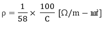 여기서 비례 정수 고유저항률 또는 비저항이라고 불려지는 것으로서, 가령 표준 연동의 도전율을 100 [%]로서 비교한 백분율의 퍼센트 도전율을 C [%]라고 하면