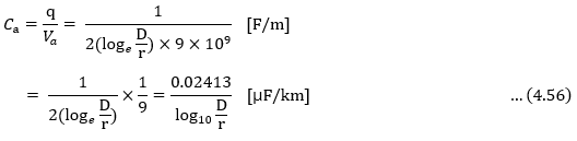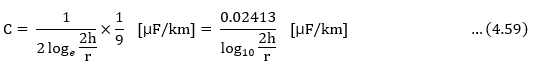 즉, 지표면이 영전위면으로 되기 때문에 앞에서 얻은 식(4.56)을 사용해서 도선 a의 대지 정전용량 C를 계산할 수 있다.