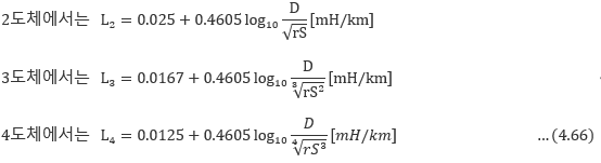 단, 4도체의 경우 소도체 상호 간의 기하학적 평균 거리 S는