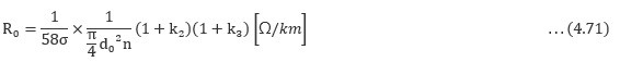 케이블의 저항은 일반적으로 20 [℃]에 있어서의 직류 표준 저항값으로 나타내고 이것을 다음 식으로 계산하고 있다.